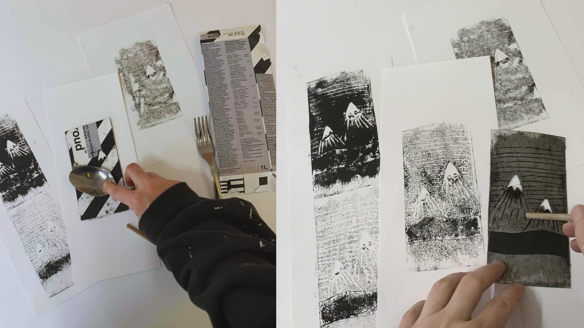 Í þessari notalegu fjölskyldustund býrðu til þinn eigin stimpil úr mjólkurfernu og prentar falleg mynstur á jólapappír og kort.